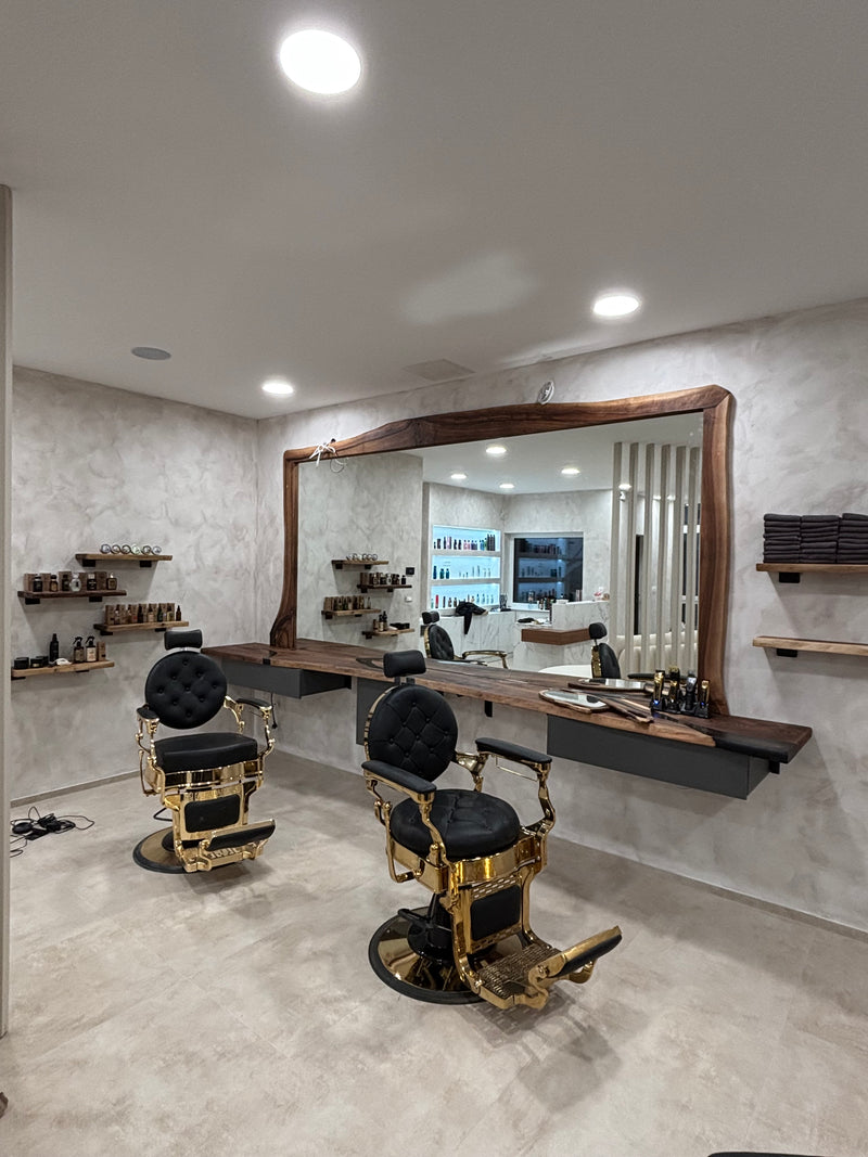 Na zgornji sliki je brivnica ki se nahaja v celju, vse lesene elemente brivnice smo izdelali mi.